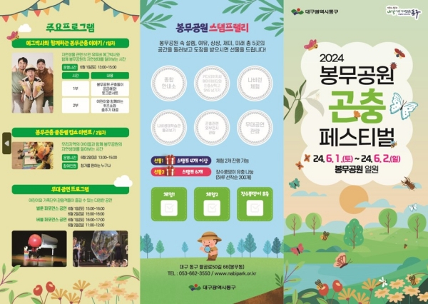 대구 동구청(구청장 윤석준)은 오는 6월 1일부터 2일까지 동구 봉무공원 일대에서 ‘제4회 봉무공원 곤충 페스티벌’을 개최한다.