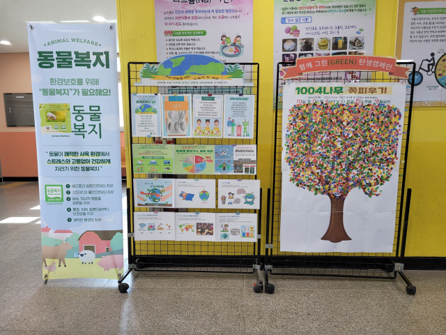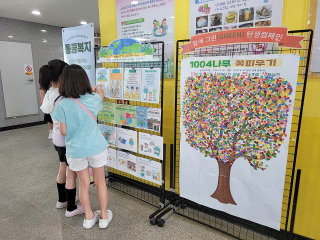 대구고산초등학교(교장 황재수)는 환경의 날을 맞아 5월 20일(월)부터 31일(금)까지 학교급식으로 발생되는 남은 음식물을 줄이기 위한 ‘1004나무 꽃 피우기 챌린지’ 활동을 실시하고, 환경의 날인 6월 5일(수)을 ‘탄생데이’로 정하여 탄소중립 생활 실천의 가치를 되새겼다.