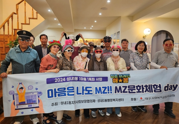 성내1동 지역사회보장협의체(위원장 정복찬)는 18일 성내1동 어르신 15여 명과 동성로 일원에서 문화행사를 체험하는 ‘청춘어게인 해★봄’중 두 번째로 ‘마음은 나도 MZ!! 동성로 MZ문화체험데이’를 진행했다.
