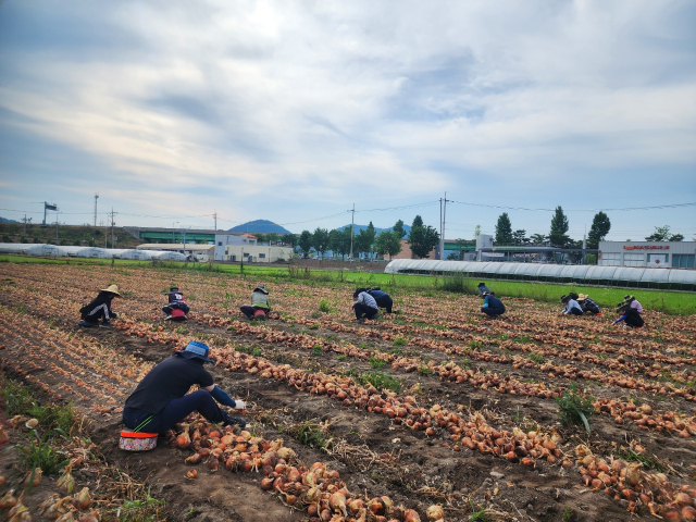 직원들은 무더운 날씨에도 불구하고 양파 수확 작업에 정성을 들이며, 지역 농가에 실질적인 도움을 주기 위해 최선을 다했다.