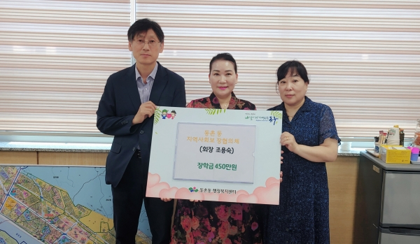 동촌동 지역사회보장협의체(민간위원장 조용숙, 공동위원장 김두한)는 지난 19일, 저소득 중·고등학교 신입생 15명에게 30만원씩 총 450만원의 장학금을 전달했다.