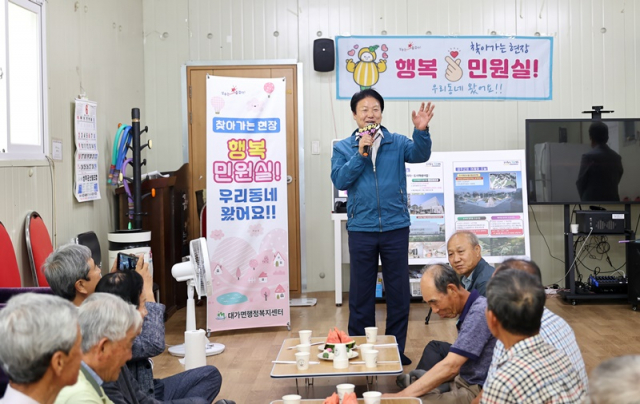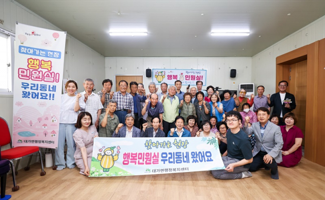 ‘행복 민원실’은 대가면에서 기획한 특수시책으로 면장 및 팀장들이 마을주민들을 직접 찾아가 군에서 추진 중인 주요 현안업무에 대해서 설명하고, 주민들의 생생한 현장의 목소리도 청취하는 주민 밀착행정 프로그램이다.