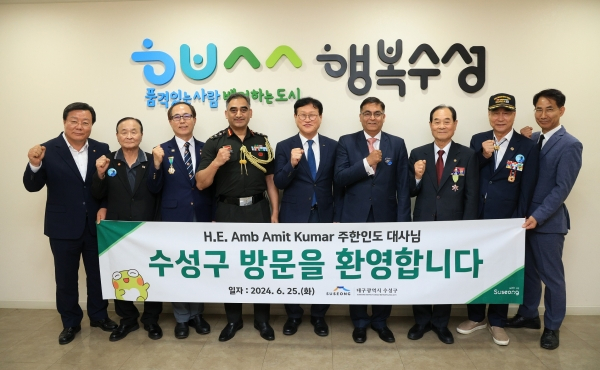 이 자리에서 아밋 쿠마르 주한 인도대사는 6·25전쟁 참전 인도군의 활약상을 담은 기념 책자를 전달하며 “인도와 대구 수성구가 교류 강화를 통해 경제·사회·문화 발전을 함께 이뤄가길 바란다”고 말했다.
