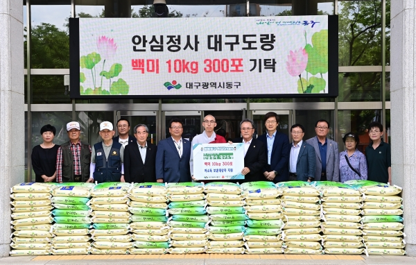 안심정사 대구도량(회주 법안스님, 주지 신평스님)은 지난 26일 10kg 백미 300포를 동구청에 기탁했다.