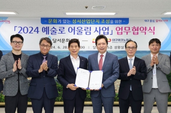 (재)달서문화재단(이사장 이태훈)이 6월 28일 달서구청에서 (재)대구테크노파크(원장 도건우)와 ‘2024 예술로 어울림’ 사업추진을 위한 업무협약을 체결했다.