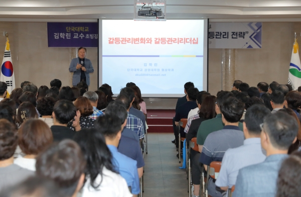대구 북구청(청장 배광식)은 7월 4일(목) 단국대 분쟁해결센터 김학린 교수를 초청해 간부공무원 및 전 직원 200여 명을 대상으로 갈등관리 특강을 실시하였다.