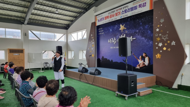 영양군보건소 정신건강복지센터는 7월5일 수비면 다목적 실내체육관에서 지역주민 어르신 대상으로 노년의 정신건강 증진 및 외로움 극복을 위한 기웅아재와 함께하는 '행복, 감사 찾기 스토리텔링'을 운영하였다.