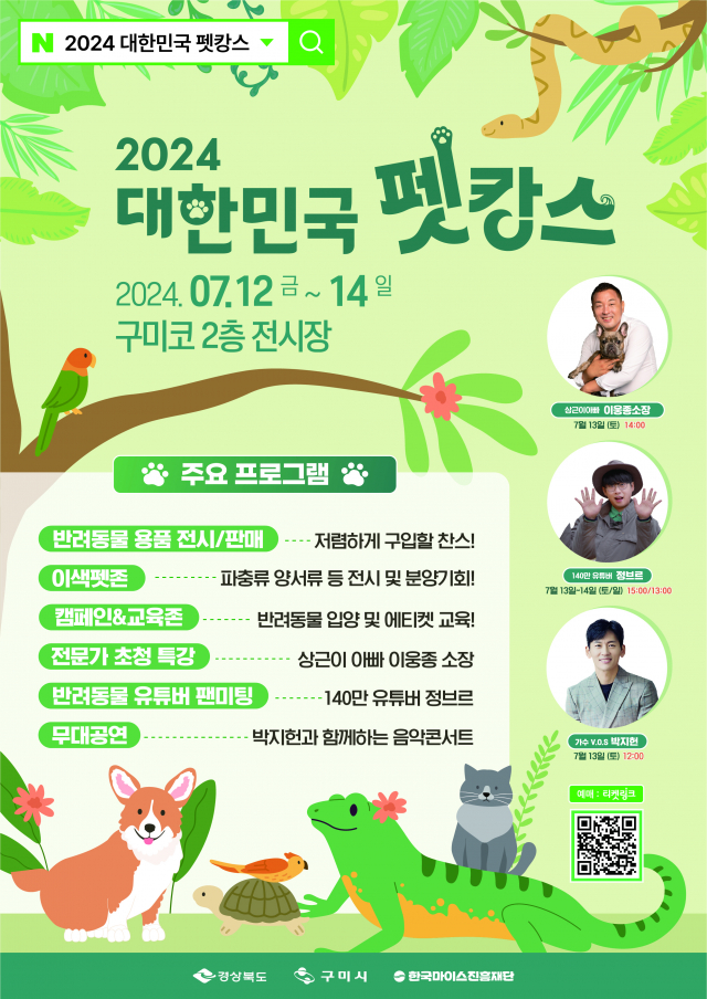 (사)한국마이스진흥재단이 주최하고 경상북도, 구미시가 후원하는 ‘2024 대한민국 펫캉스’가 오는 12일부터 14일까지 3일간 구미코에서 열린다.