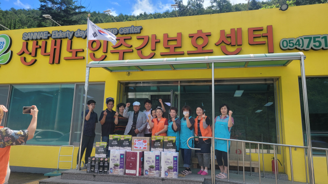 산내면 이장협의회(회장 한경식)는 무더운 여름철을 맞이하여 16일 산내면 노인주간보호센터(원장 최은식)에 생필품과 두유세트를 전달했다.