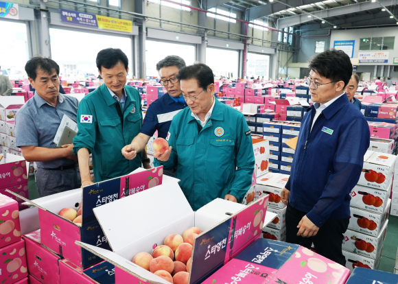 17일 최기문 영천시장은 본격적인 여름 과일 출하철을 맞아 영천시농산물도매시장(대표 김남구), 영천농협공판장(조합장 성영근), 능금농협영천공판장(지점장 우수정)을 찾아 관계자와 농가들을 격려했다.