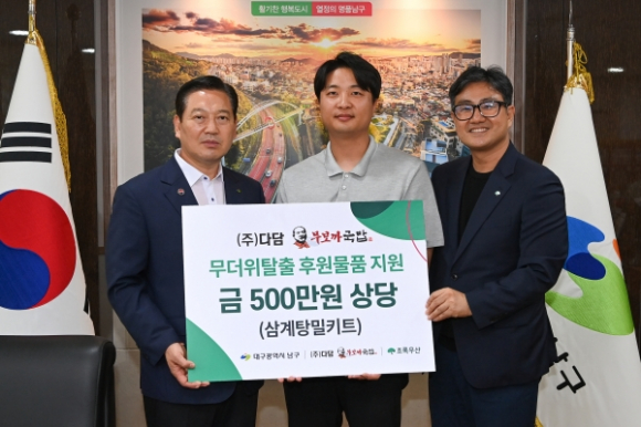 ㈜다담(대표 박정훈)은 지난 15일 초복을 맞아 남구 지역아동센터 아동들이 건강한 여름을 보낼 수 있도록 초록우산어린이재단 대구지역본부를 통해 누룽지 삼계탕 밀키트 500팩(500만원 상당)을 대구 남구에 전달했다.