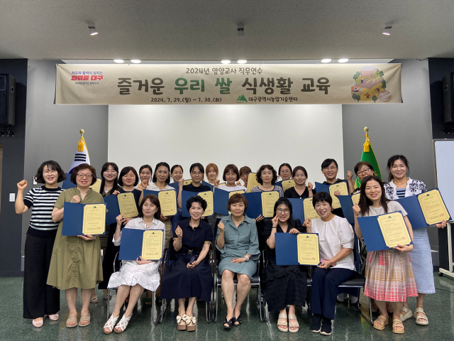 대구광역시농업기술센터(소장 오명숙)는 대구 유아·초등·중등 영양교사 19명을 대상으로 ‘즐거운 우리 쌀 식생활 교육’이라는 주제로 7월 29일(월)부터 30일(화)까지 직무연수를 실시했다.