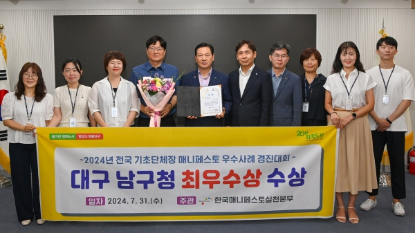 대구 남구는 한국매니페스토실천본부가 주최하는 「2024 전국 기초단체장 매니페스토 우수사례 경진대회」에서 대구 기초자치단체로는 유일하게 최우수상을 수상하는 영예를 안았다.