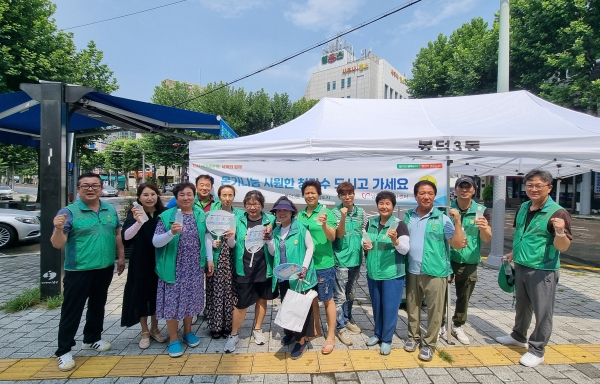 대구 남구 봉덕3동 새마을협의회(회장 김광철), 새마을부녀회(회장 김진순)는 8월 5일에 폭염으로 어려움을 겪는 시민들의 건강을 지키기 위해 청라수 나눔 봉사를 실시했다고 밝혔다.