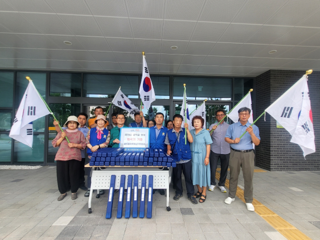 바르게살기운동 영천시협의회 완산동위원회(위원장 신정호)가 제79주년 광복절을 앞두고 완산동행정복지센터에 가정용 태극기 세트 50개(50만 원 상당)를 기증했다.