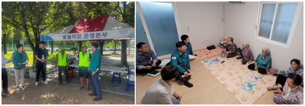 마지막으로 무더위쉼터를 방문해 실내환경과 냉방기 정상 작동 여부, 무더위쉼터 간판 부착 상태 등을 점검한 후 시설을 이용하는 어르신들의 안부를 묻고 애로사항을 청취했다. 건강관리에 각별한 주의가 필요한 어르신들에게 야외 활동을 최대한 자제하고 쉼터를 적극 이용해 줄 것을 요청했다.