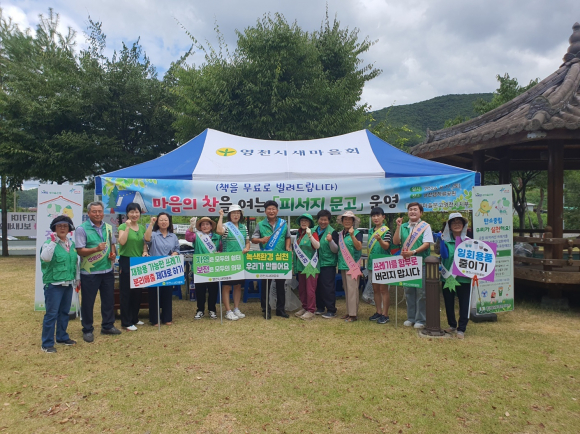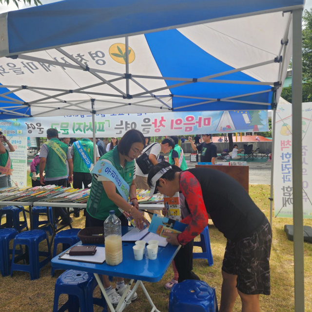새마을문고 영천시지부에서는 본격적인 휴가철을 맞아 오토캠핑장, 영천수변테마파크 등 여름철 휴식공간이 갖춰져 있는 임고면 영천댐하류공원을 찾는 피서객들에게 피서지 문고 운영을 통해 독서 휴식공간을 제공하고, 탄소중립 실천운동과 환경정화활동을 함께 진행해 행사의 의미를 더했다.