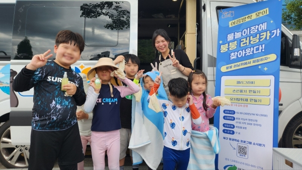 대구 북구청(청장 배광식)은 지난 8월 7일(수)부터 8월 16일(금)까지 이동형 강의실인 「붕붕 러닝카」를 활용하여 공원 물놀이장으로 찾아가 가족들이 함께 즐기는 평생교육 프로그램을 운영했다.