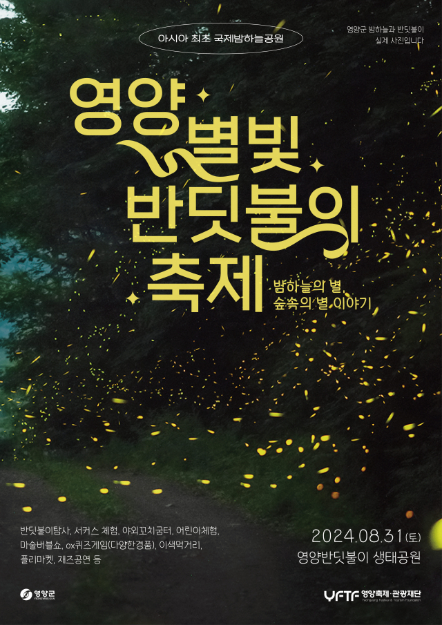 영양군(군수 오도창)은 8월 31일(토) 영양 국제밤하늘 보호공원에서 ‘2024년 별빛 반딧불이 체험 축제’를 개최한다.