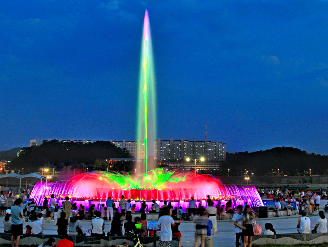 한편, 클래식 버스킹 공연이 끝나는 8시부터는 시원한 분수 물줄기와 다양한 음악, 그리고 화려한 조명이 어우러져 환상적인 야경을 연출하는 낙동강 음악분수 공연이 이어진다.