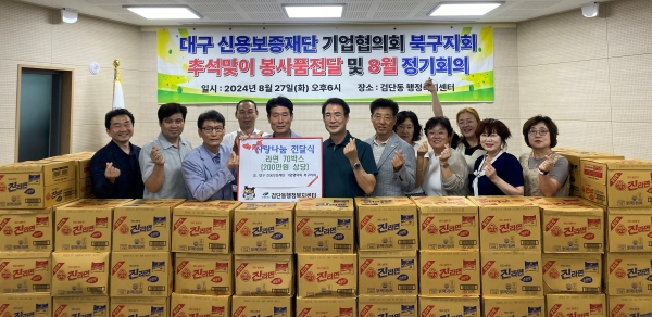 대구신용보증재단 기업협의회 북구지회는 긴 여름 무더위와 곧 다가오는 추석 명절을 앞두고 어려움을 겪는 이웃들에게 전해 달라며 라면 70박스(200만 원 상당)를 검단동행정복지센터에 기탁했다.