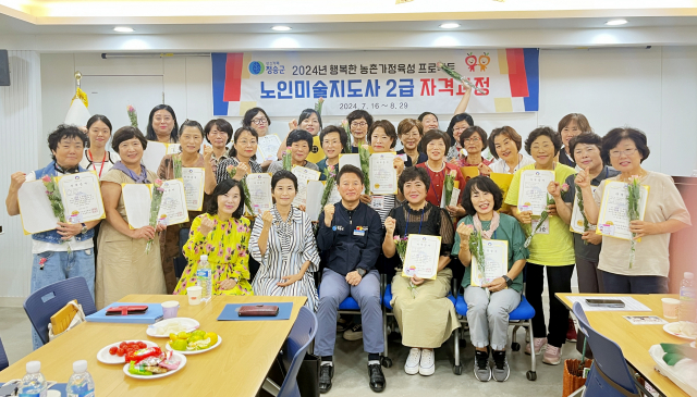 청송군농업기술센터는 지난달 29일, 행복한 농촌가정육성 프로젝트 일환으로 진행된 ‘노인미술지도사 2급 자격과정’ 수료식을 가졌다.