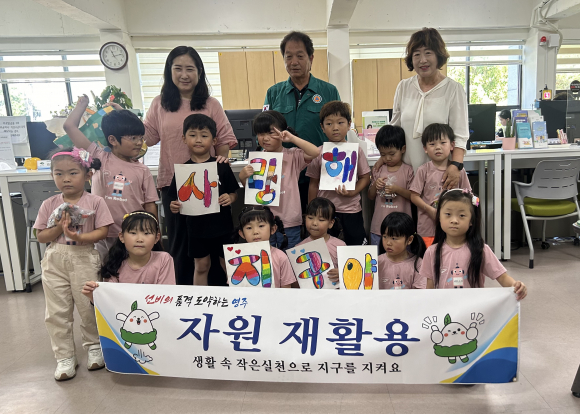 이날 유치원 원아들은 깨끗하게 씻어서 말린 우유팩과 장난감 등 일상생활 속에서 사용하는 용품들에서 나온 폐건전지를 직접 모아 휴천1동 행정복지센터에서 화장지와 새 건전지로 교환하는 체험학습을 통해 생활 속에서 실천할 수 있는 자원순환에 대해 배우는 기회를 가졌다.