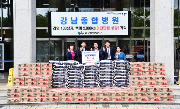 강남종합병원(원장 최용석)은 지난 12일, 관내 저소득 가정을 위해 라면과 백미(1천만원 상당)를 동구청에 기탁했다.