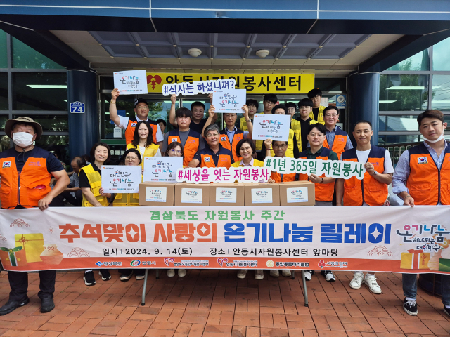 추석맞이 ‘사랑의 온기나눔 릴레이’는 민족 대명절 추석 연휴를 맞아 지역사회 곳곳에 따뜻한 나눔의 손길이 미칠 수 있도록 현장 나눔활동을 실시하는 캠페인이다. 이와 함께하는 ‘행복한 사랑방 밥차’는 안동시자원봉사센터가 주관하는 비예산 사업으로 매주 토요일 안동시자원봉사센터 앞마당에서 운영되며, 소외계층 어르신들을 대상으로 주말 무료급식 봉사가 지속적으로 진행되고 있다.