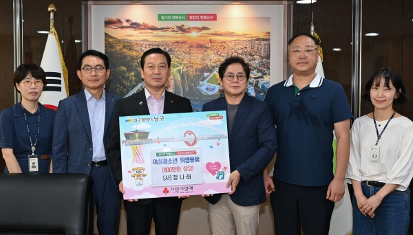 대구 남구는 지난 12일 사단법인 청나래(회장 박관식)가 남구의 여성 청소년들을 위해 ‘Blue Dream’ 100박스(800만원 상당)를 기탁했다고 밝혔다.