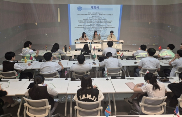 | ↑↑ 세계시민-국제기구 대구 체험관을 찾은 학생들이 ‘모의 국제회의 체험’을 진행하고 있다. |