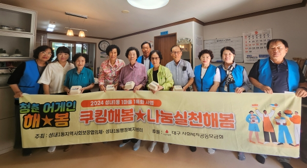 대구 중구 성내1동 지역사회보장협의체(위원장 정복찬)는 23일 어르신 10명과 함께 맘보바리스타제과 제빵학원에서 도시락 케이크와 쿠키를 만들고 포장해 경로당 어르신들에게 전달하는 ‘쿠킹해봄 나눔실천해봄’ 체험행사를 진행했다.