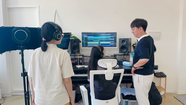 | ↑↑ 멜팅소다 멤버들이 음원을 녹음하고 있는 모습 |