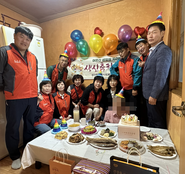 이날 협의체 위원들은 위원들이 정성스럽게 준비한 케이크와 함께 찰밥, 미역국, 불고기, 잡채, 생선, 나물, 전, 호박죽, 밑반찬, 떡, 단술, 과일, 간식, 선물로 생일상을 차렸다. 또 생일 축가를 부르며 어르신의 건강을 기원했다.