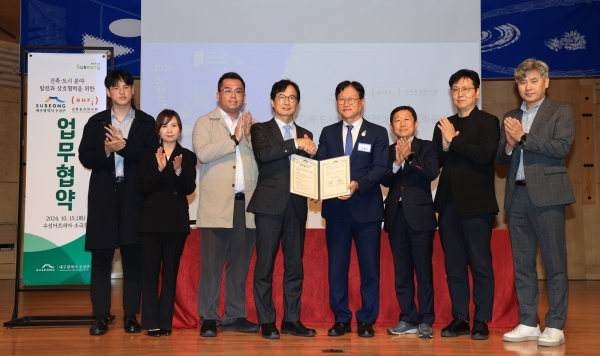 협약식은 ‘2024 수성국제비엔날레’ 개막행사에서 진행됐으며 김대권 수성구청장, 이영범 건축공간연구원장 등이 참석했다.