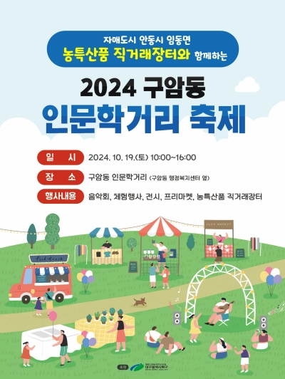 대구 북구 구암동 행정복지센터(동장 노연주)는 ‘2024 구암동 인문학거리 축제’를 오는 10월 19일(토) 구암동 인문학거리(구암동 행정복지센터 옆)에서 개최한다.