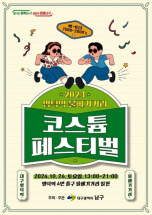 대구 남구는 오는 10월 26일 토요일, 13시부터 21시까지 명덕역 물베기 거리(남구 청소년 블루존) 일원에서 '2024 명덕역 물베기거리×코스튬 페스티벌'을 개최한다고 17일 밝혔다.