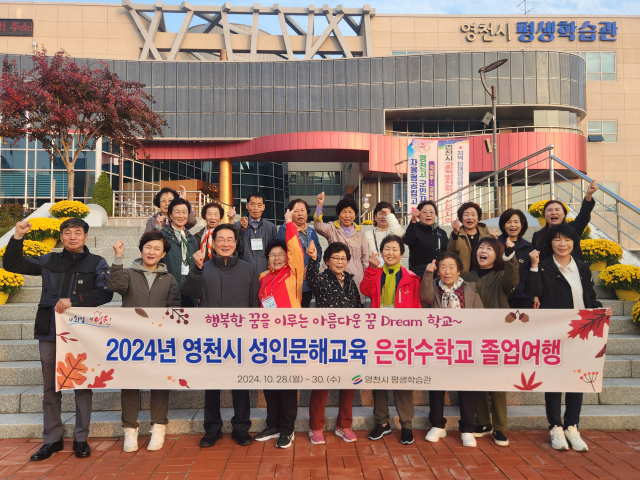 영천시 평생학습관(관장 김미희)은 28일부터 30일까지 초등학력 인정과정 문해교육 은하수학교 학습자를 대상으로 제주도로 졸업여행을 진행해 학업을 마치는 기쁨과 함께 소중한 추억을 선사한다고 밝혔다.