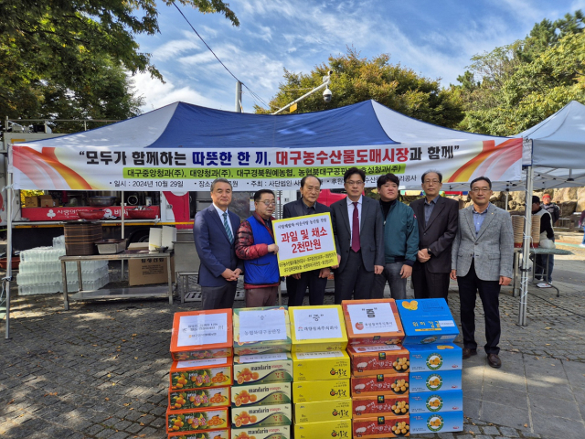 대구농수산물유통관리공사와 대구농수산물도매시장 내 5개 법인, 대구중앙청과, 대양청과, 대구경북원예농협, 농협북대구, 효성청과는 두류공원에서 농산물 기부와 봉사활동 행사를 개최했다.