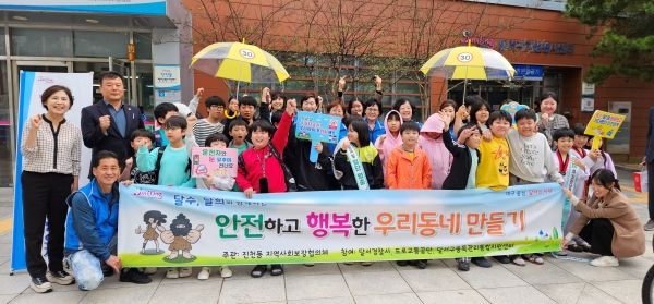대구 달서구 진천동(동장 류근현) 지역사회보장협의체(위원장 김명화)에서 지난 25일 아동 50명을 대상으로 교통안전 교육과 거리 캠페인 후 안전용품(우산, 레인코트)을 지원했다.
