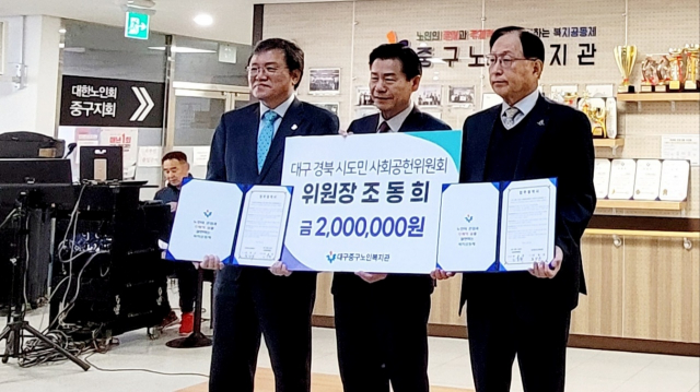 중구 노인 복지관 김창규 관장은 이렇게 대구 경북 시도민 사회공헌 위원회 조동희 위원장과 박은희 단장을 비롯한 단원분들의 노고에 감사드리며 200만원을 기부해 주셔서 정말 고답다고 하였으며