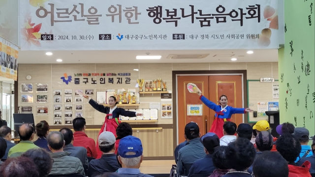 10월30일 10시부터 11시50분 까지 대구경북 시도민 사회공헌위원회는 중구노인 복지관에서 지역어르신 170분을 모시고 행복나눔 음악회를 가졌다