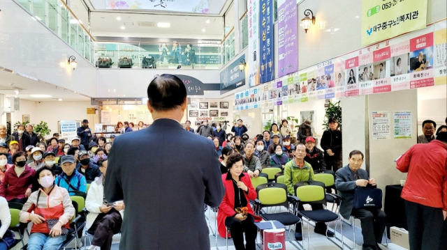 이날 행사는 황보란 중구 부구청장의 주선으로 이루어졌으며 류규하 중구청장이 참석하여 어르신 께서 행복하셔야 사회가 밝아 진다고 축사를 하였고 황보란 부구청장은 사회자의 소개에도 불구하고 어르신분들이 즐거운 시간을 갖도록 주선 하는걸로 충분하다고 단상의 축사는 극구사양하였다