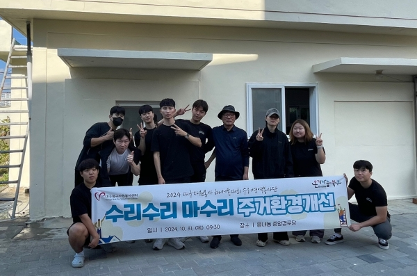 대구북구자원봉사센터와 경북대학교 건축학과 전공 동아리 학생들은 지난 10월 31일(목) 북구 읍내동의 노후화된 경로당 환경개선을 위해 외벽 수리 및 도색작업 봉사활동을 실시했다.