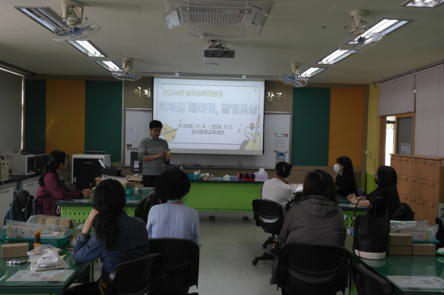 대구남부교육지원청(교육장 류호)은 11월 4일(월)부터 7일(목)까지 총 4기에 걸쳐 성서초등학교 발명교육센터에서 관내 초·중학교 학부모 56명을 대상으로 ‘2024. 학부모 메이커·발명 교실’을 운영한다.