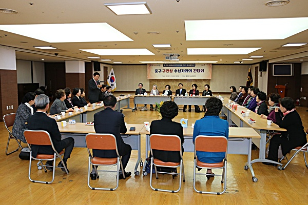 이날 간담회는 역대 구민상 수상자들로부터 향후 중구 발전방향에 대한 의견수렴을 통해, ‘소통과 참여, 희망의 새중구’ 건설에 적극 반영하기 위해 마련된 것으로, 역대 구민상수상자 32명이 참석해 구정 주요현안에 대해 자유롭게 의견을 나누었다.