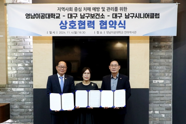 대구 남구치매안심센터는 지난 11월 4일(월) 영남이공대학교 천마역사관에서 남구 치매예방관리사업 민·관·학 업무 협약을 체결했다고 밝혔다.