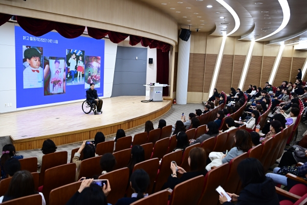 강사는 최근 유튜브 크리에이터로 다양한 방송 출연과 강연을 펼치고 있는 박위 위라클 대표로 ‘당신의 생각을 제한하는 것이 장애입니다’를 주제로 베리어프리(barrier free)의 의미와 삶에 대한 긍정적인 태도, 가치 등을 중심으로 강의했다.