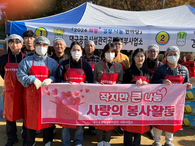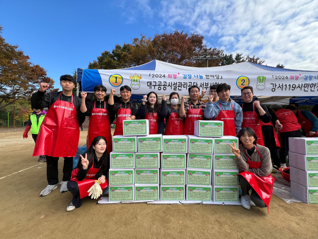 대구공공시설관리공단(이사장 문기봉) 서부사업소가 11월 9일(토) 달서구 학산공원 운동장에서 겨울철 취약계층에게 따뜻한 온기를 나누기 위한 김장 나눔 봉사를 실시했다.