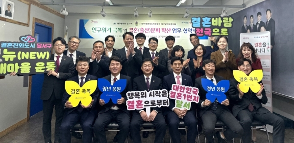 이번 협약을 통해 협약기관은 달서구가 추진하고 있는잘 만나보세뉴(NEW) 새마을운동에 적극 동참해 인구위기 극복 및 결혼(출산)장려 문화 조성에 상호 협력하기로 했다.